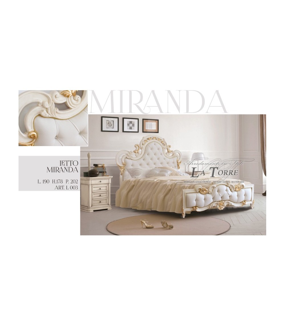 Baroque king size double bed in solid wood, eco-leather, gold, silver, Miranda