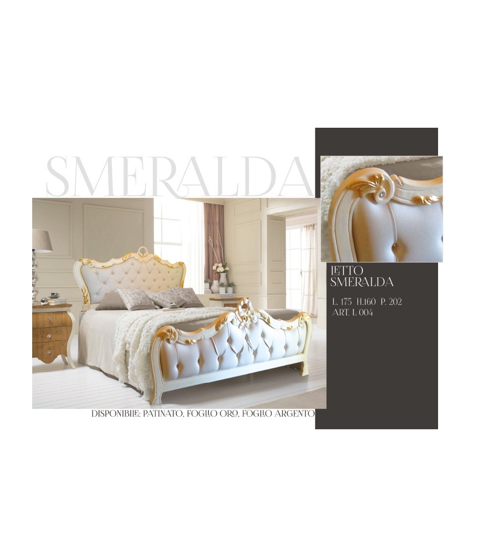 Baroque king size double bed in solid wood, eco-leather, gold, silver, Emerald