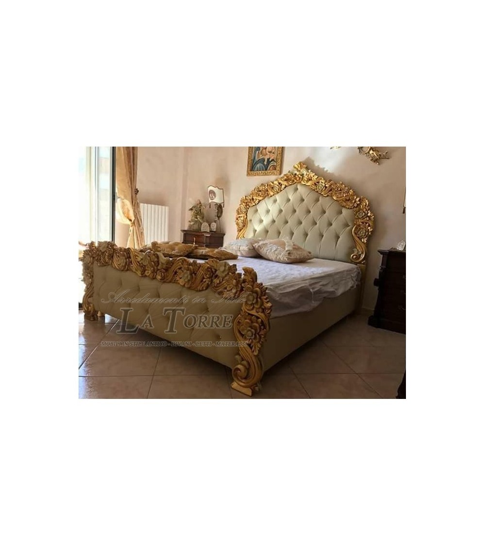 King size double bed with Baroque eco-leather container, wood, gold and silver PILISSENA