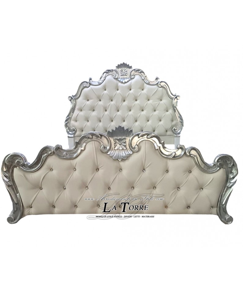 King size double bed with Baroque eco-leather container, gold and silver Fabiola wood