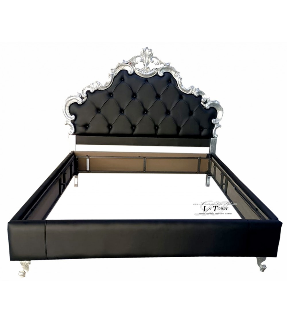 King Size Double Bed Container Eco-leather Baroque Wood Wood Silver Black Bryan