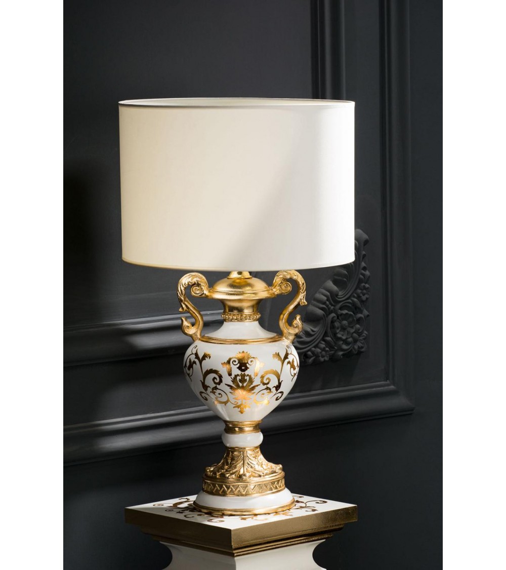 Table lamp, classic lamp, abat jour, gold ceramic ornament, VI01
