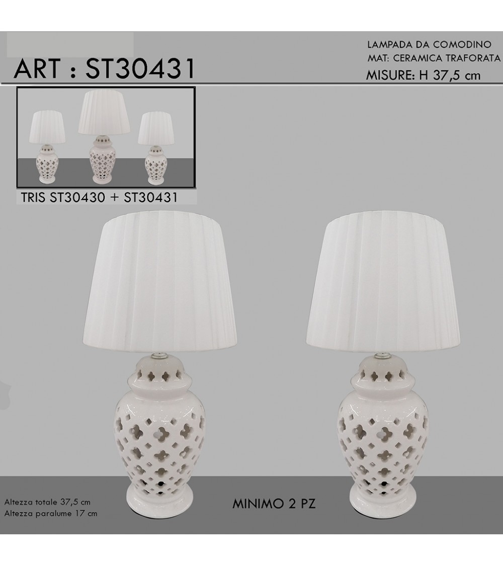 Table lamp pair of lampshades H37.5 white ceramic modern classic light ST30431