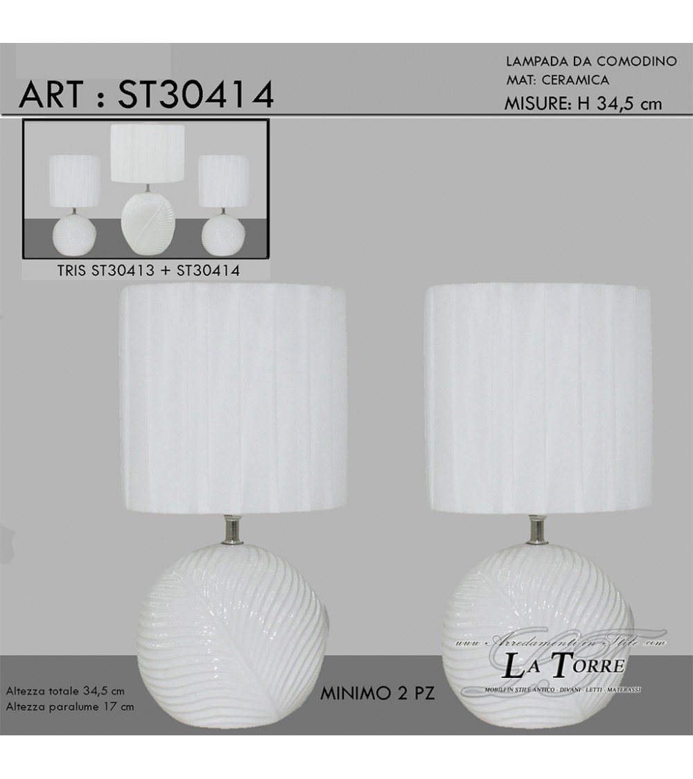Table lamp pair of lampshades H34.5 white ceramic leaf modern classic light ST30414