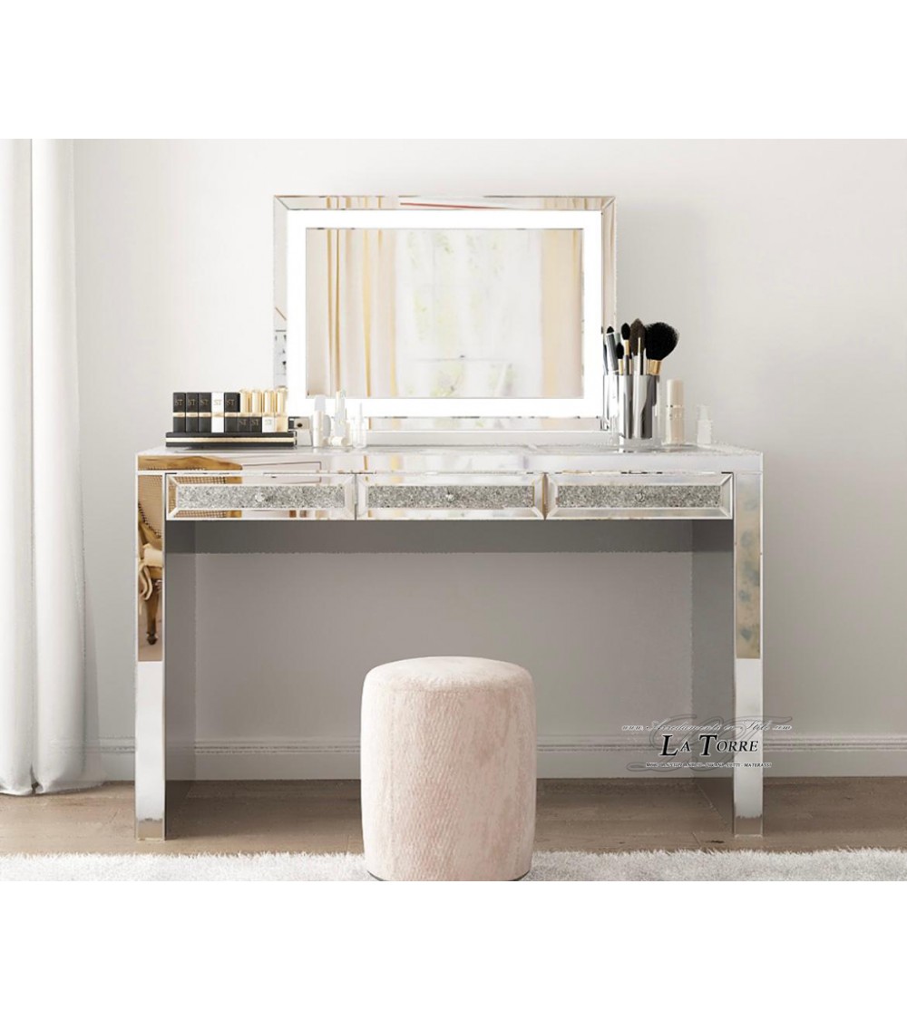 Mirrored Dressing Table with Swarovski Drawers – Modern and Luxury Design H83D