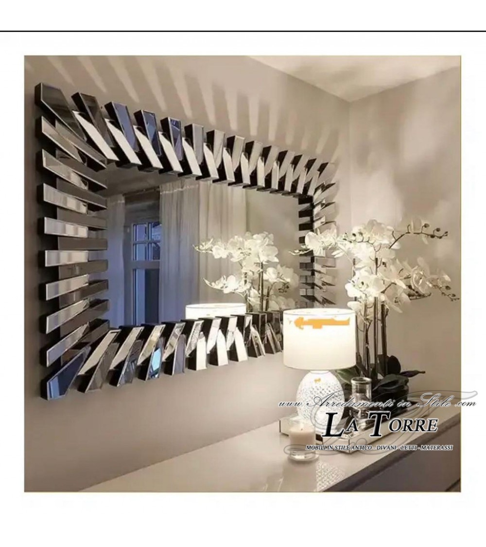 Discover the timeless elegance of this modern rectangular mirror, perfect for adding light and depth to your spaces. The reflective geometric frame creates a unique visual effect, making it not just a decorative accessory but a true design element.