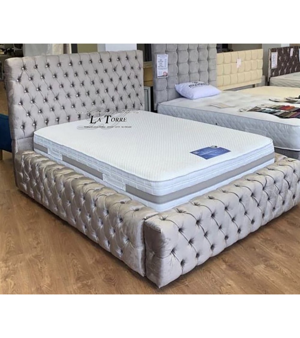 Modern container double bed in Margaret gray eco-leather velvet