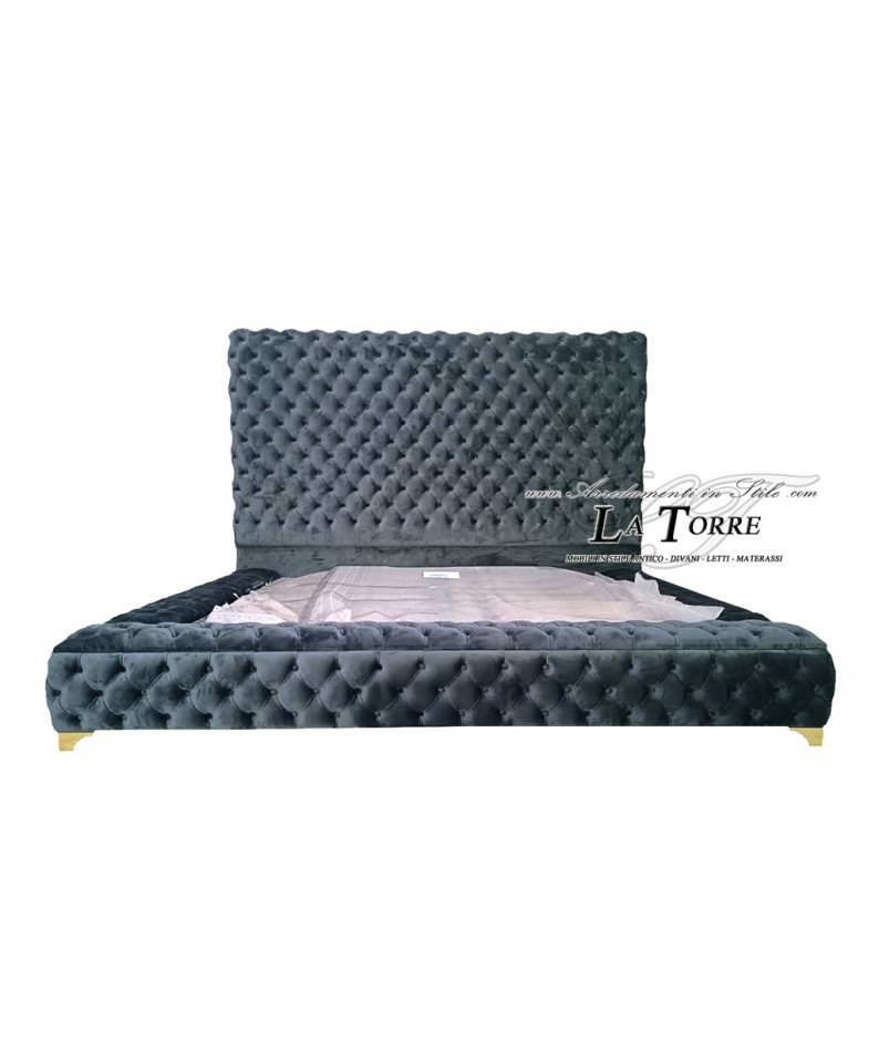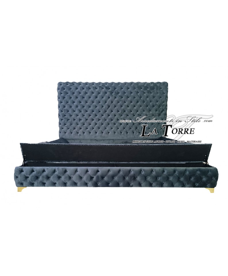 Double bed with storage bands Modern velvet eco-leather any color Livio