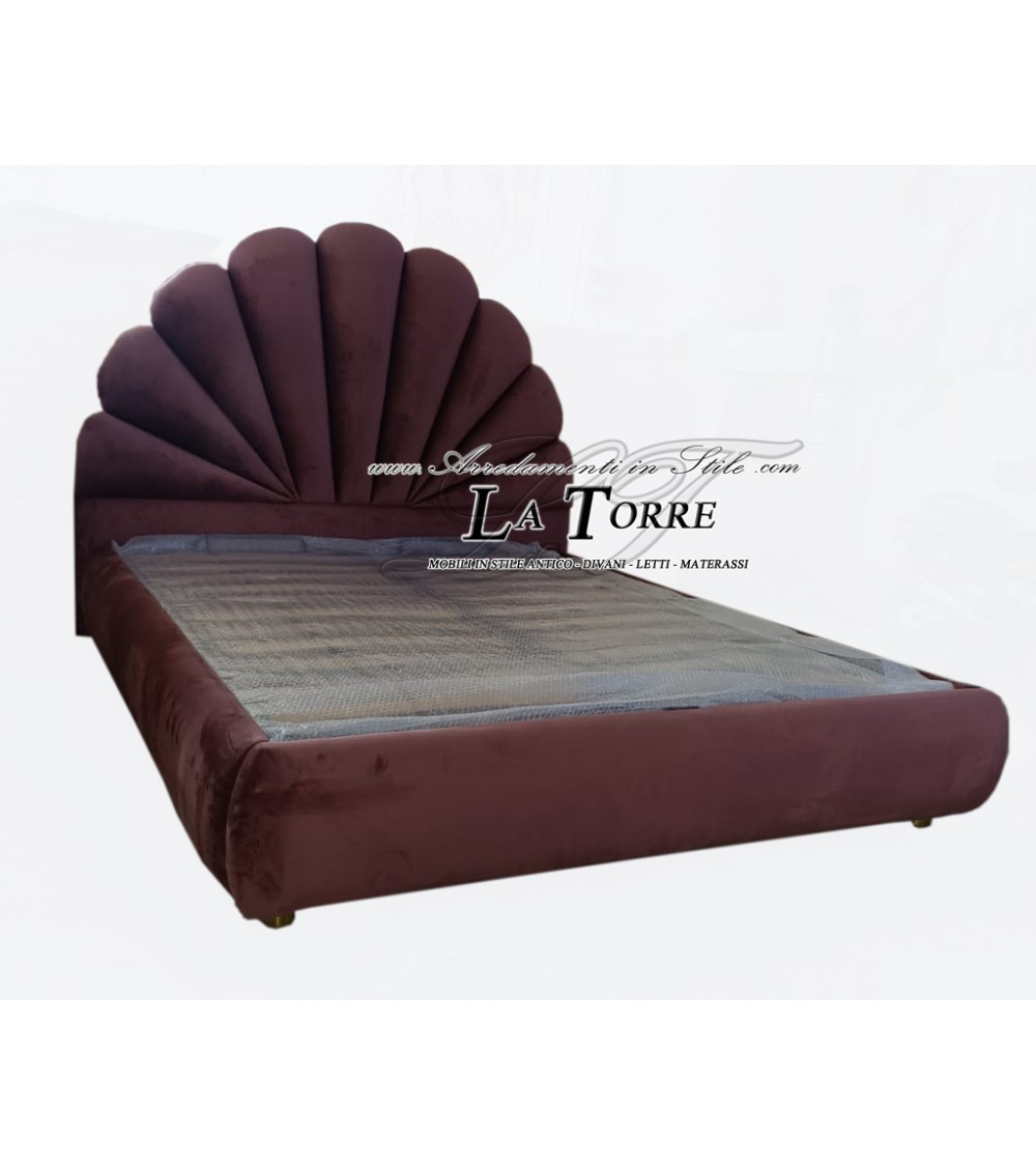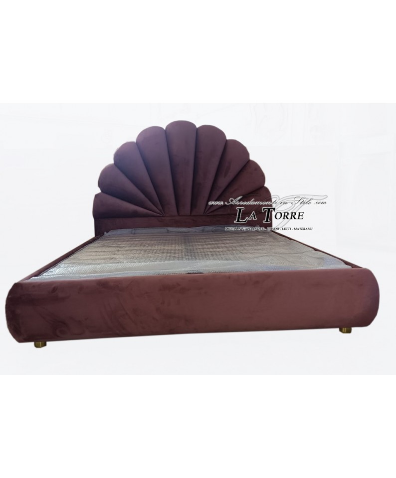 Modern design double bed in eco-leather or velvet in Sole plum container