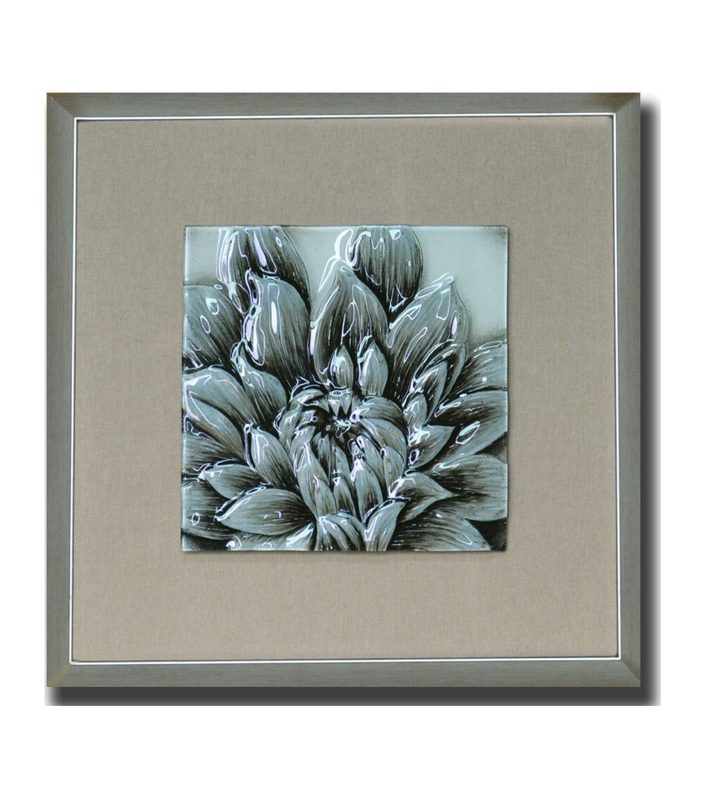 Modern silver and beige peony flower relief painted picture with frame included ST24032
