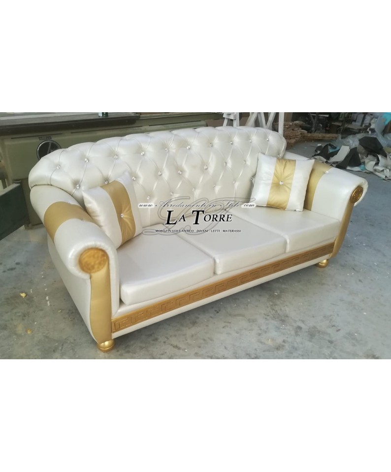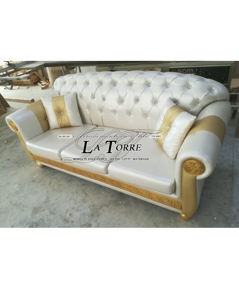 3 seater sofa with bed base and baroque mattress goddess medusa faux leather champagne gold greek swarovski AZ03