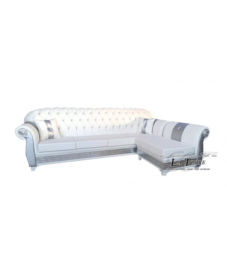 4-seater peninsula sofa with mesh backrest and baroque Chesterfield mattress Goddess Medusa Greek swarovski eco-leather AZ08