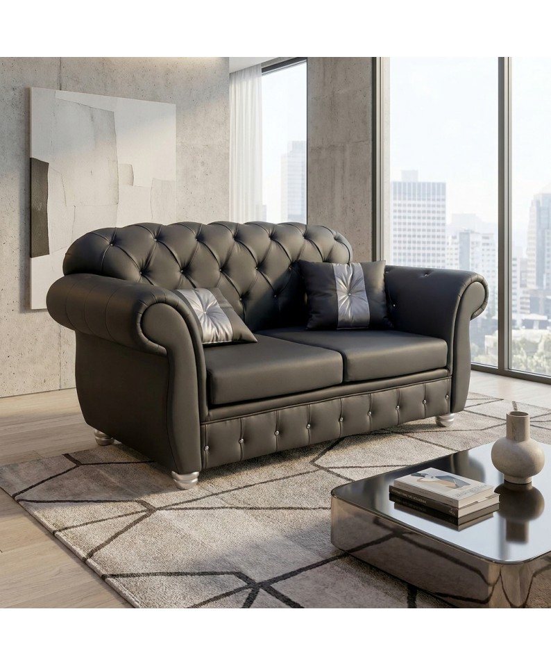 Chesterfield 2 Seater Sofa Bed Capitonné Customizable Faux Leather Fabric AZ02