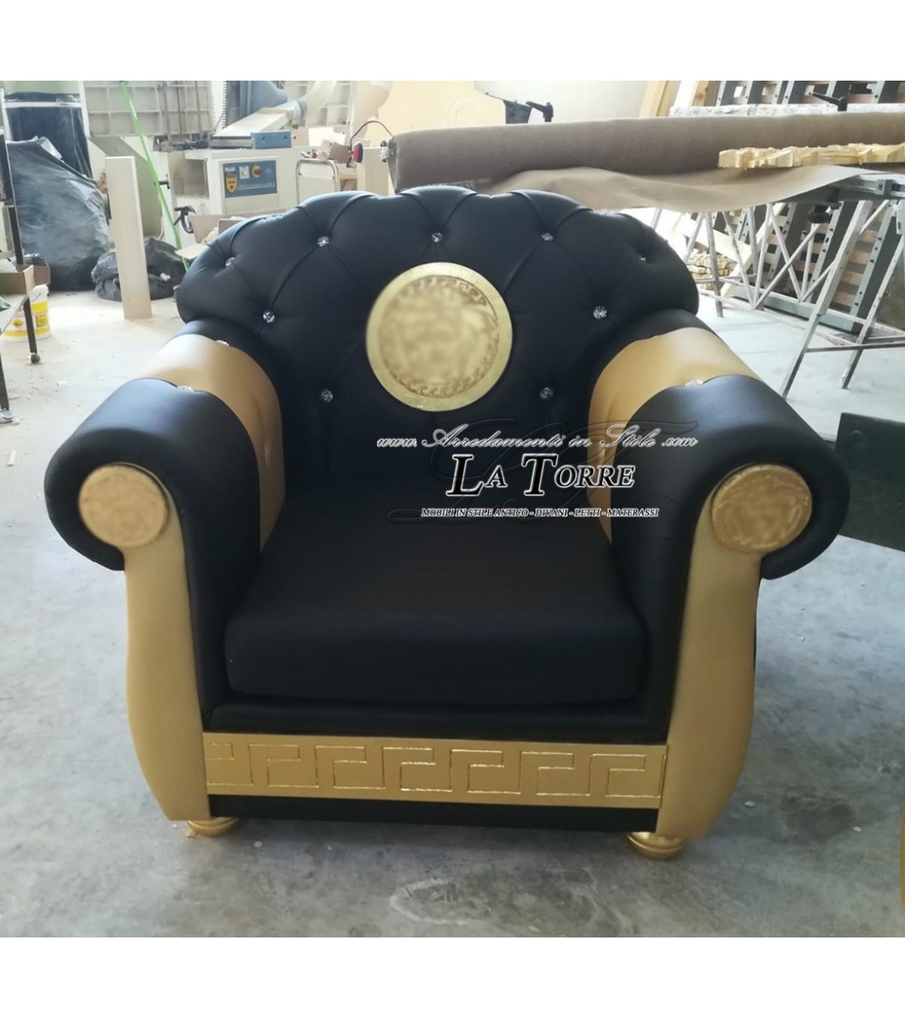 Armchair Sofa base and mattress Armrests Baroque Chesterfield Faux leather or velvet Any color Swarovski AZ01