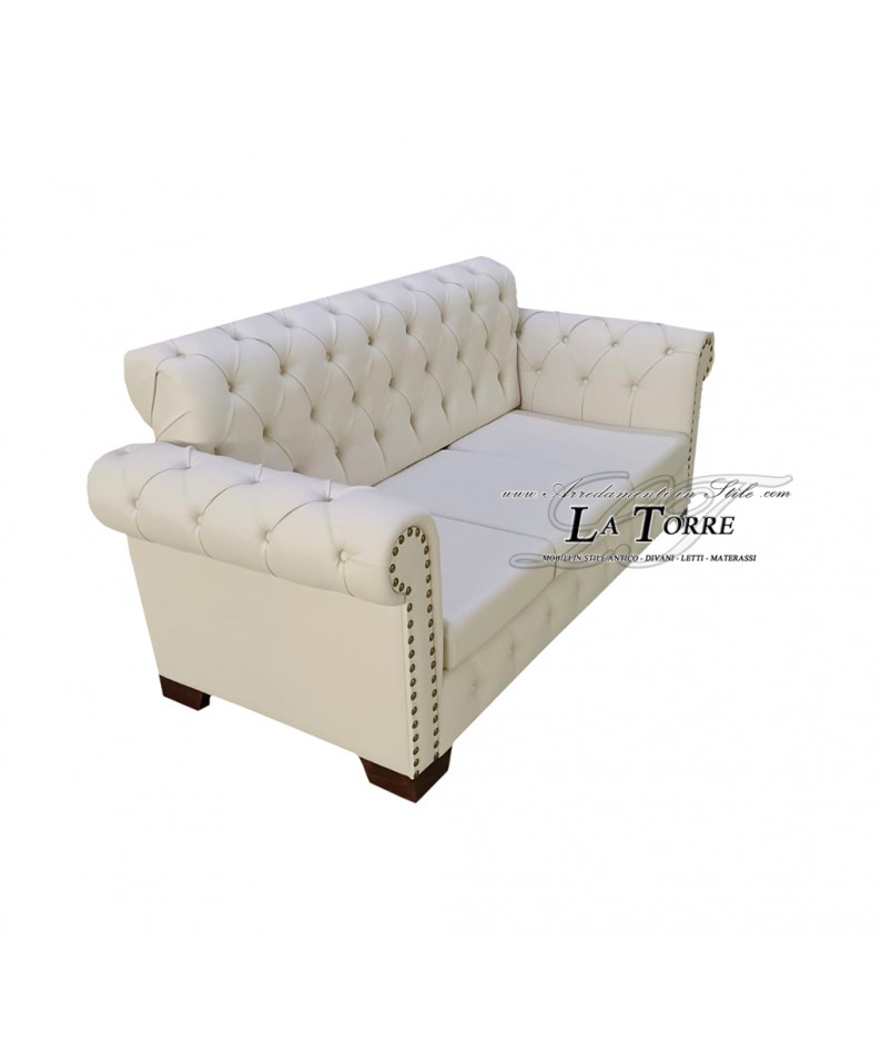 3-seater sofa bed base and baroque tufted mattress in velvet or ivory eco-leather buttons AZ10