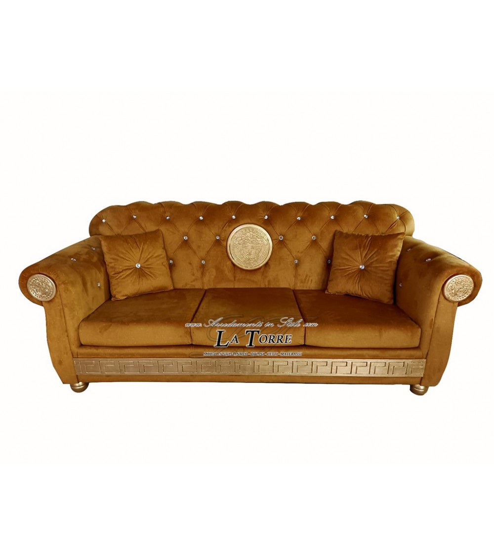 3-seater sofa bed with bed base and Baroque Chesterfield mattress Greek Goddess Medusa eco-leather or velvet any color Swarovski AZ03