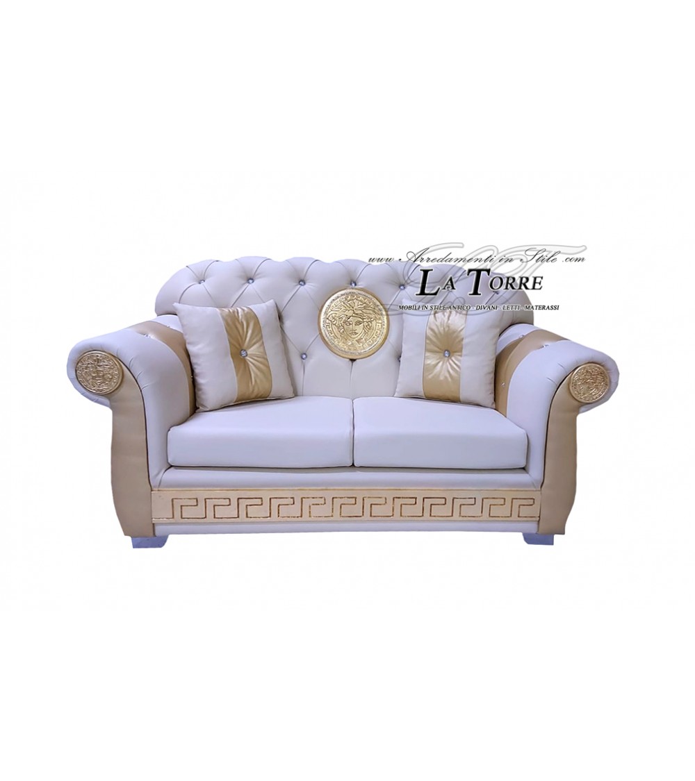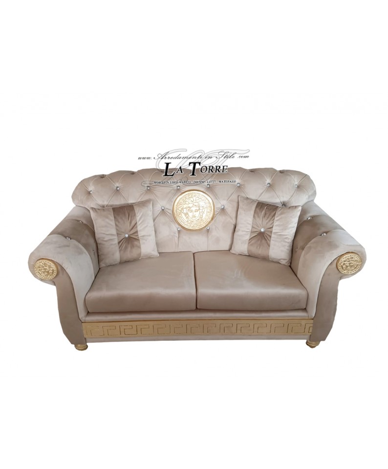 Baroque Chesterfield 2-seater sofa with mesh and mattress Greek goddess Medusa eco-leather or velvet any swarovski color AZ02