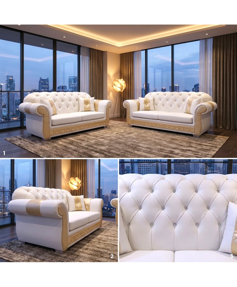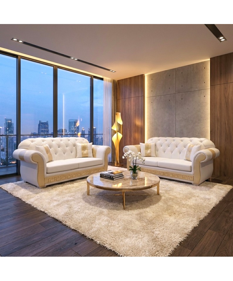 The AZ02 2-Seater Chesterfield Sofa Bed in a refined white and gold finish embodies the excellence of classic style revisited with a modern twist. The bright hues and gold details lend an elegant and prestigious visual impact, perfect for high-end settings.