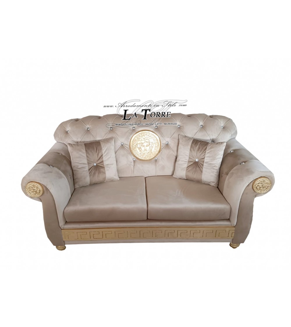 Baroque Chesterfield 2-seater sofa with mesh and mattress Greek goddess Medusa eco-leather or velvet any swarovski color AZ02
