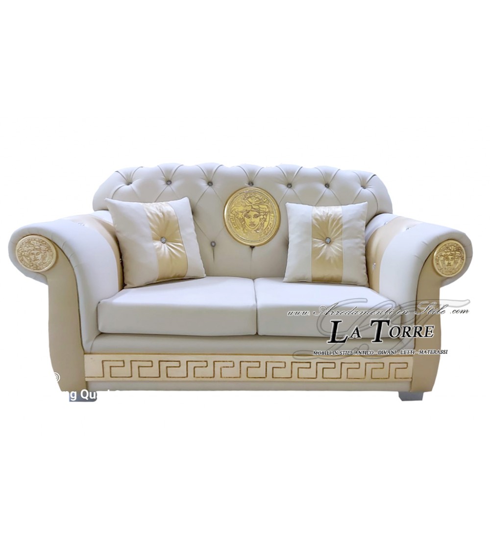 Baroque Chesterfield 2-seater sofa with mesh and mattress Greek goddess Medusa eco-leather or velvet any swarovski color AZ02