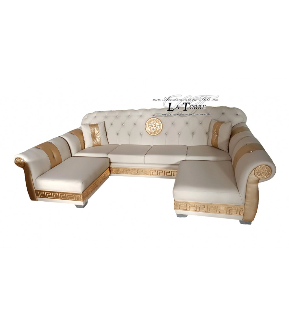 4 seater double peninsula sofa with mesh backrest and baroque Chesterfield mattress Goddess Medusa Greek swarovski eco-leather