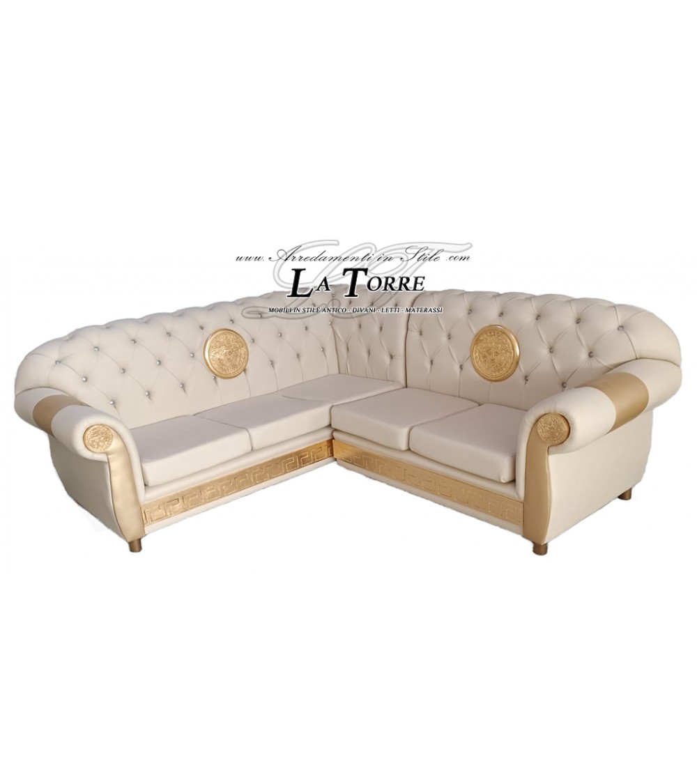 5-seater corner sofa with Chesterfield base and baroque mattress Medusa Greek faux leather swarovski AZ26