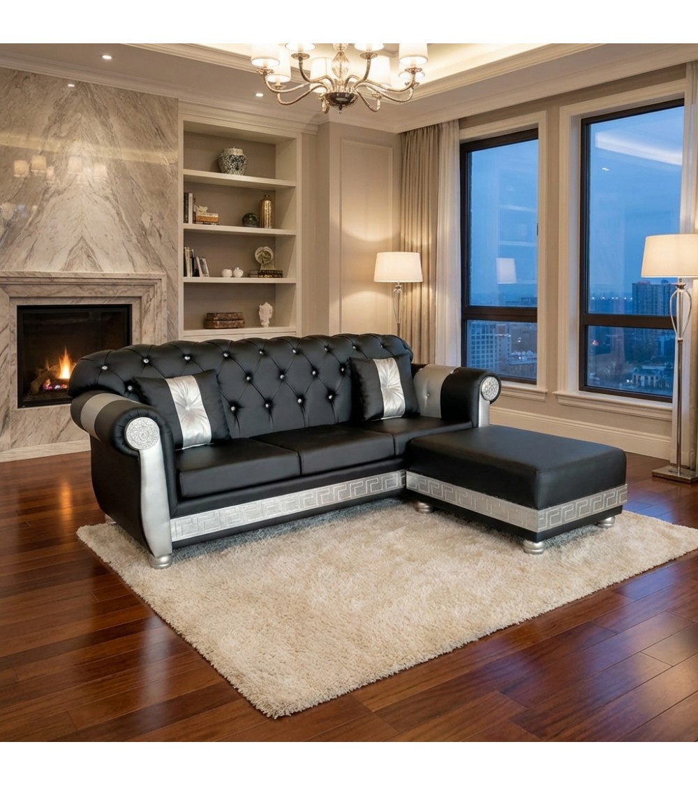 The modern Chesterfield 3-seater sofa with peninsula is an elegant and functional furnishing solution, designed for those who want to combine refined design and practicality in a single product.