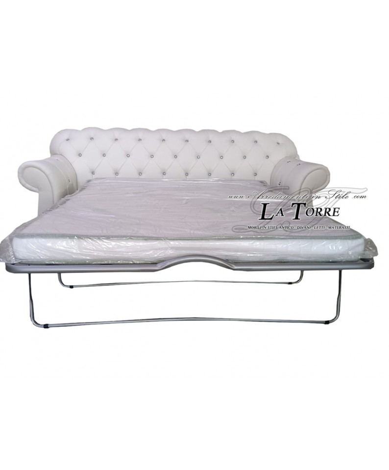 3 seater sofa bed with Greek baroque Chesterfield mattress and base, faux leather or velvet any color Swarovski AZ03