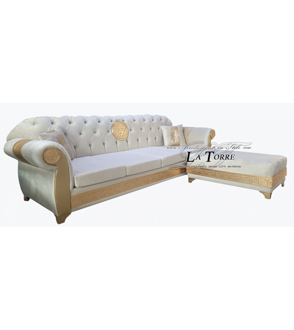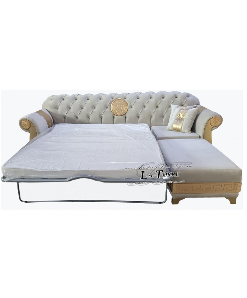 4 seater peninsula sofa with bed base and chesterfield mattress baroque goddess medusa faux leather or velvet any color Greek swarovski AZ07