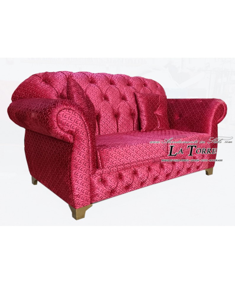 2 seater sofa with bed base and baroque Chesterfield mattress, eco-leather or velvet any color Swarovski AZ02