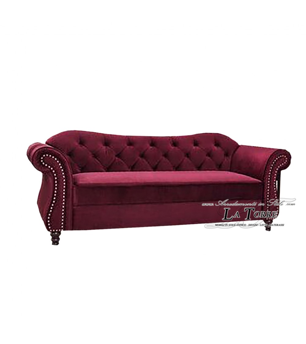 Three-seater sofa with a luxurious and refined design, covered in a soft velvet of an intense burgundy color, which gives a rich and welcoming look.