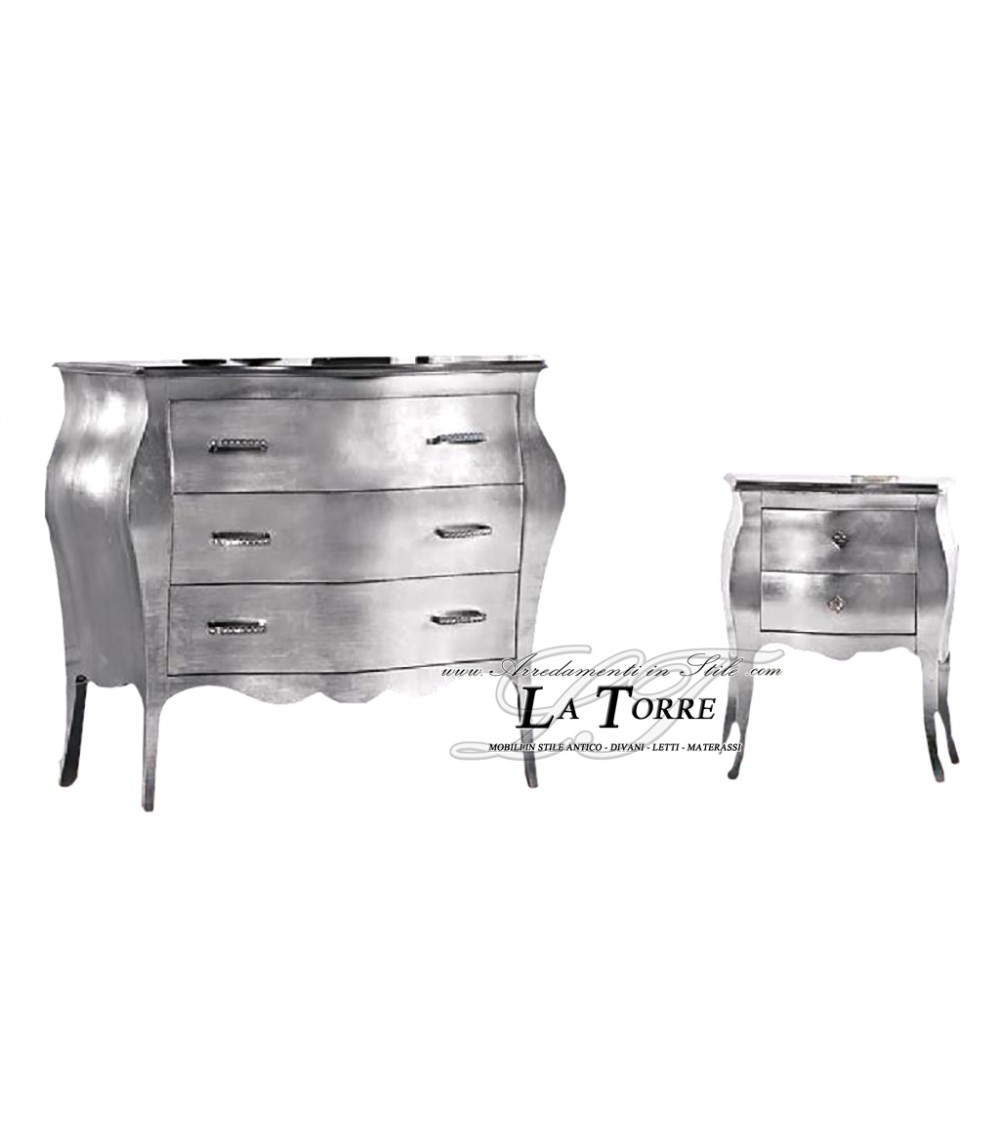 Triptych bedroom night group chest of drawers classic rounded gold or silver bedside table in Alba wood