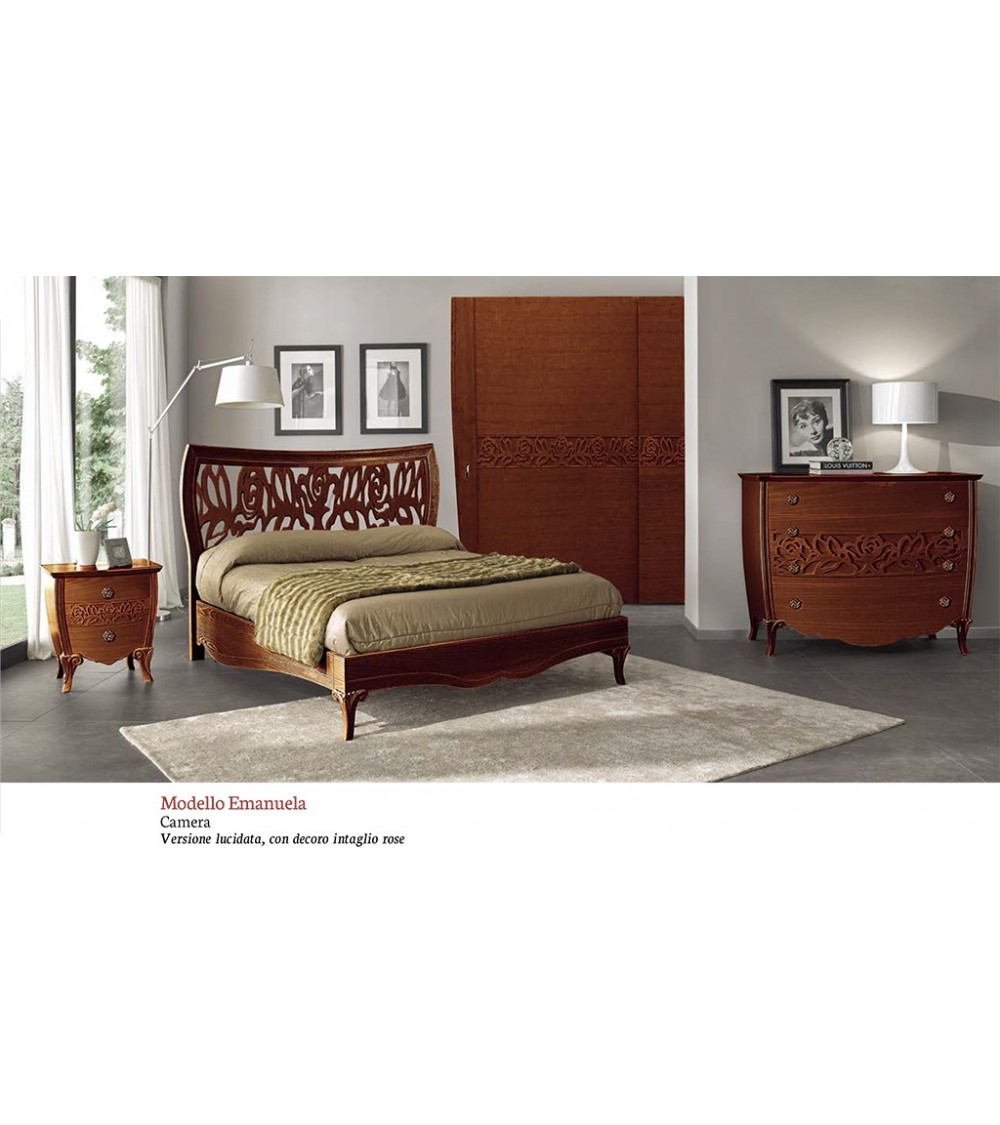 Triptych bedroom night group chest of drawers bedside table classic polished modern walnut with roses