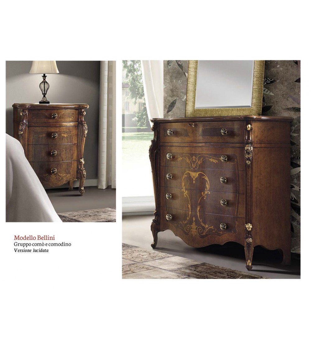 Triptych bedroom night group chest of drawers bedside table classic lacquered walnut gold