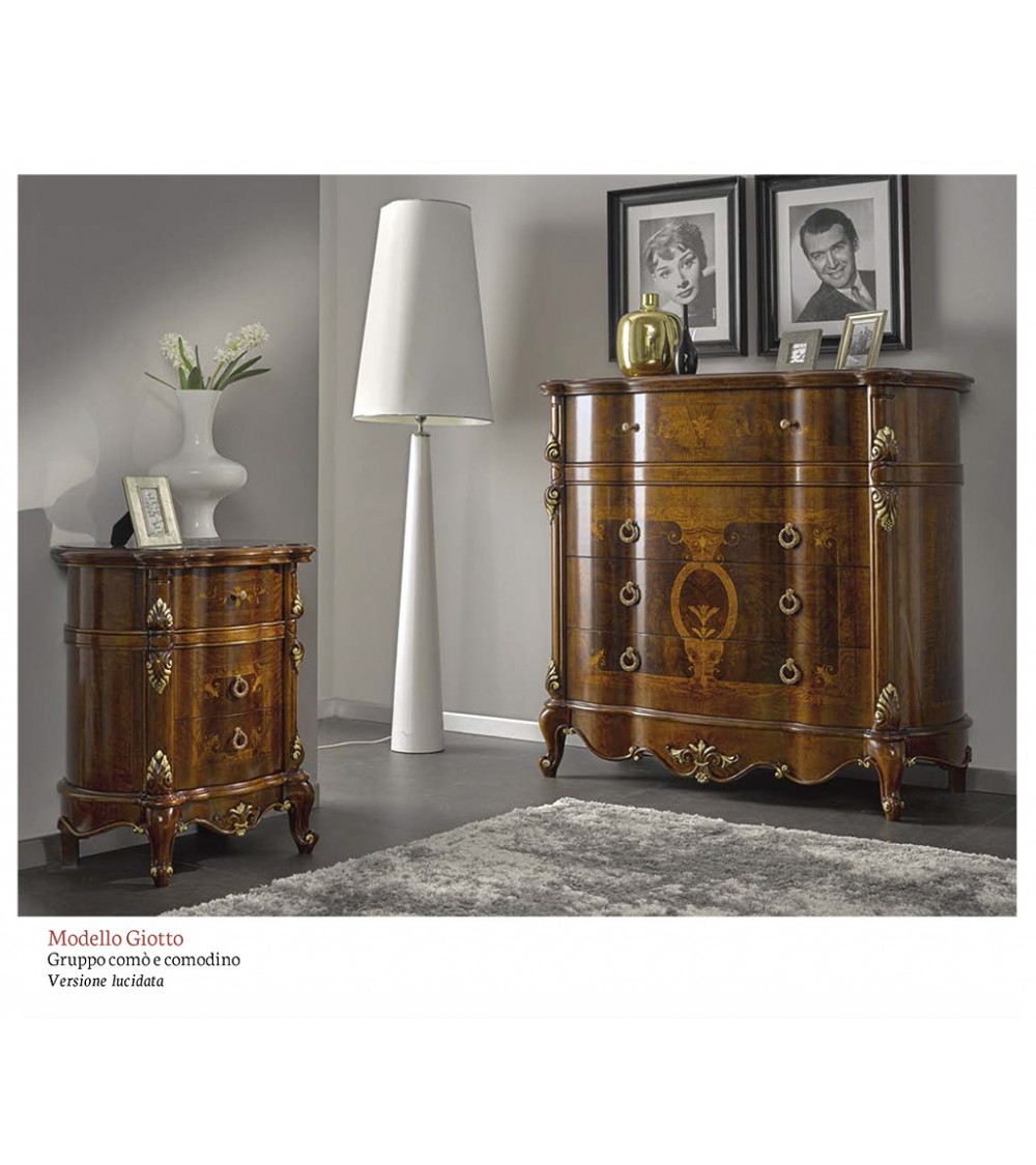 Triptych bedroom night group chest of drawers bedside table classic polished walnut and gold