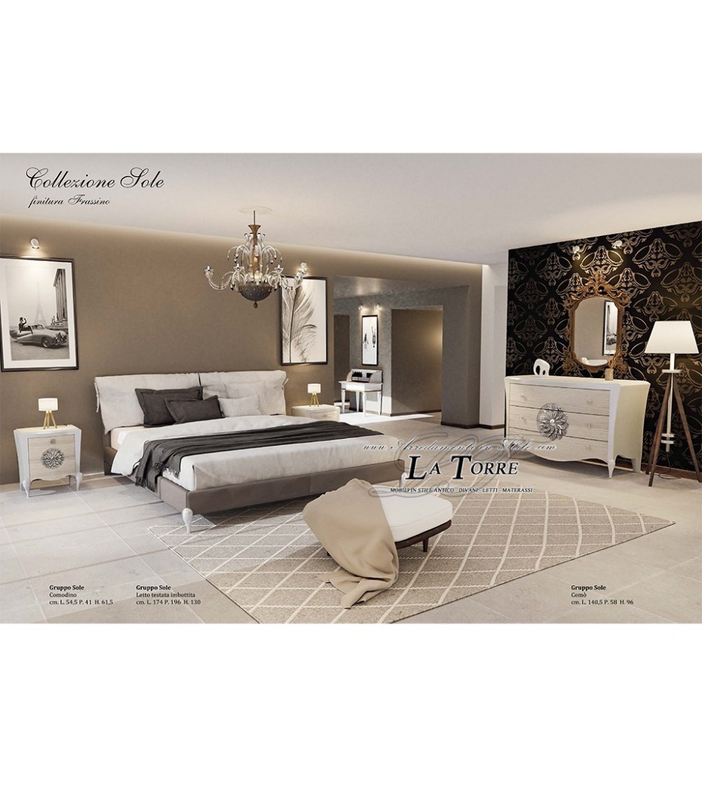 Bedroom triptych Sole night group dresser bedside table modern classic lacquered white and ash