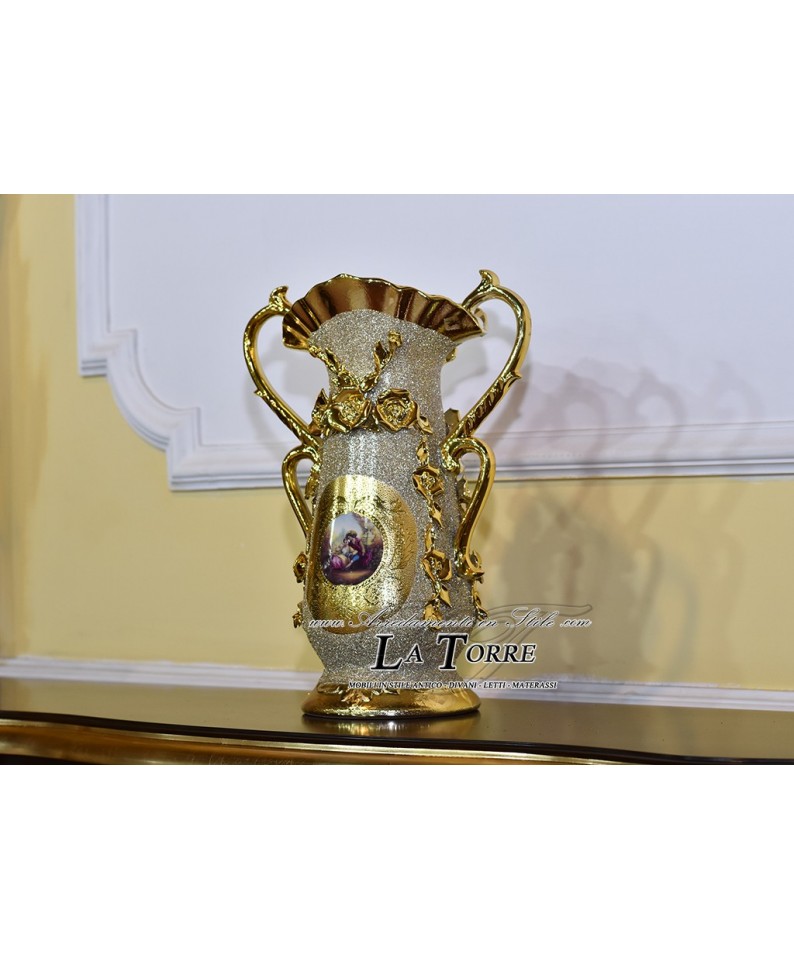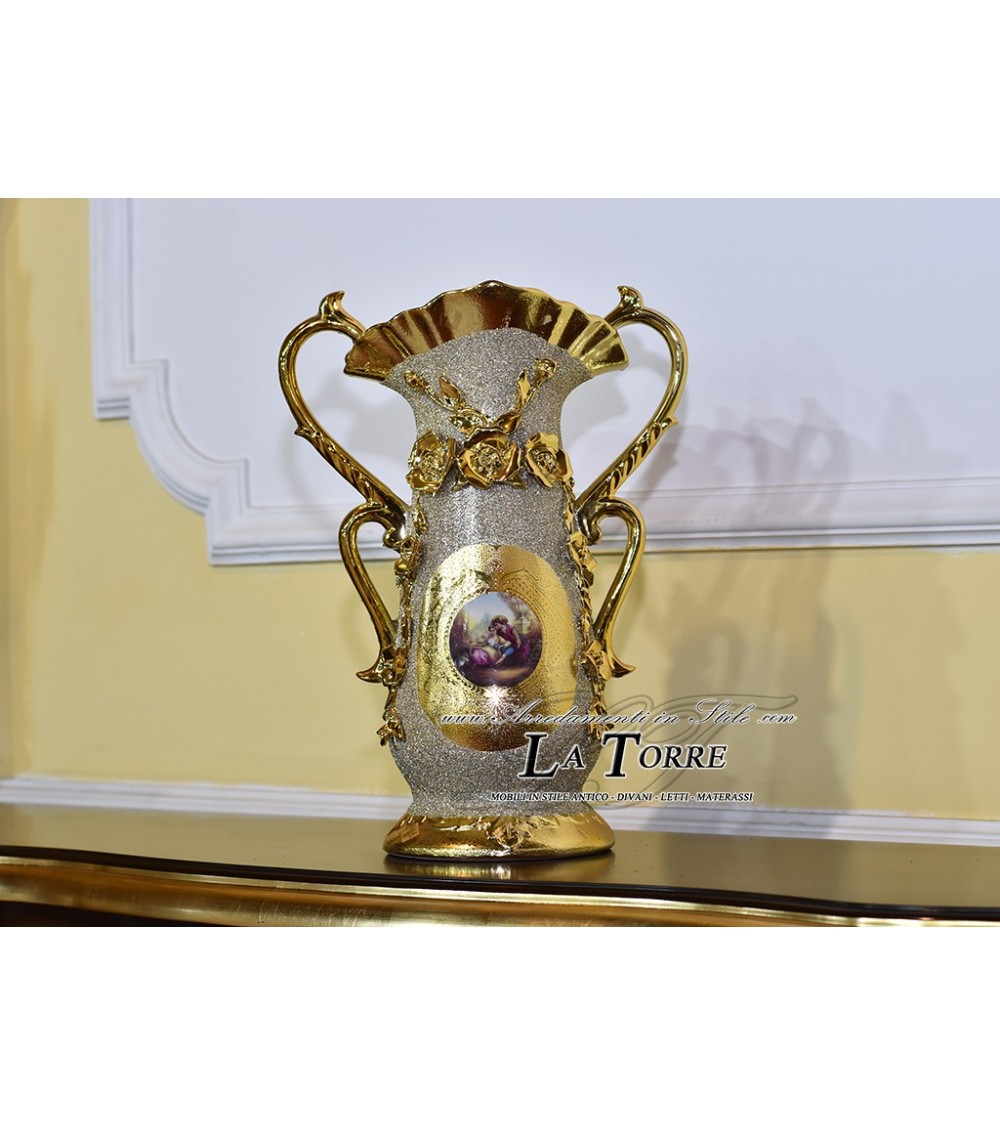 Hand-painted porcelain Amphora vase Flower holder cup with gold handles Po09
