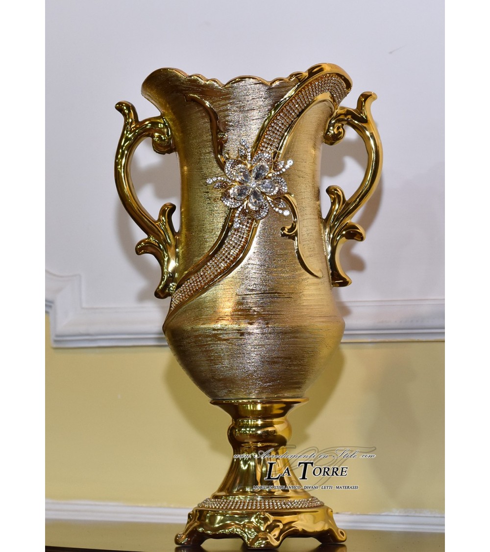 Swarovski porcelain Amphora vase Flower holder cup with gold handles Po14
