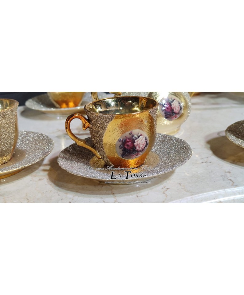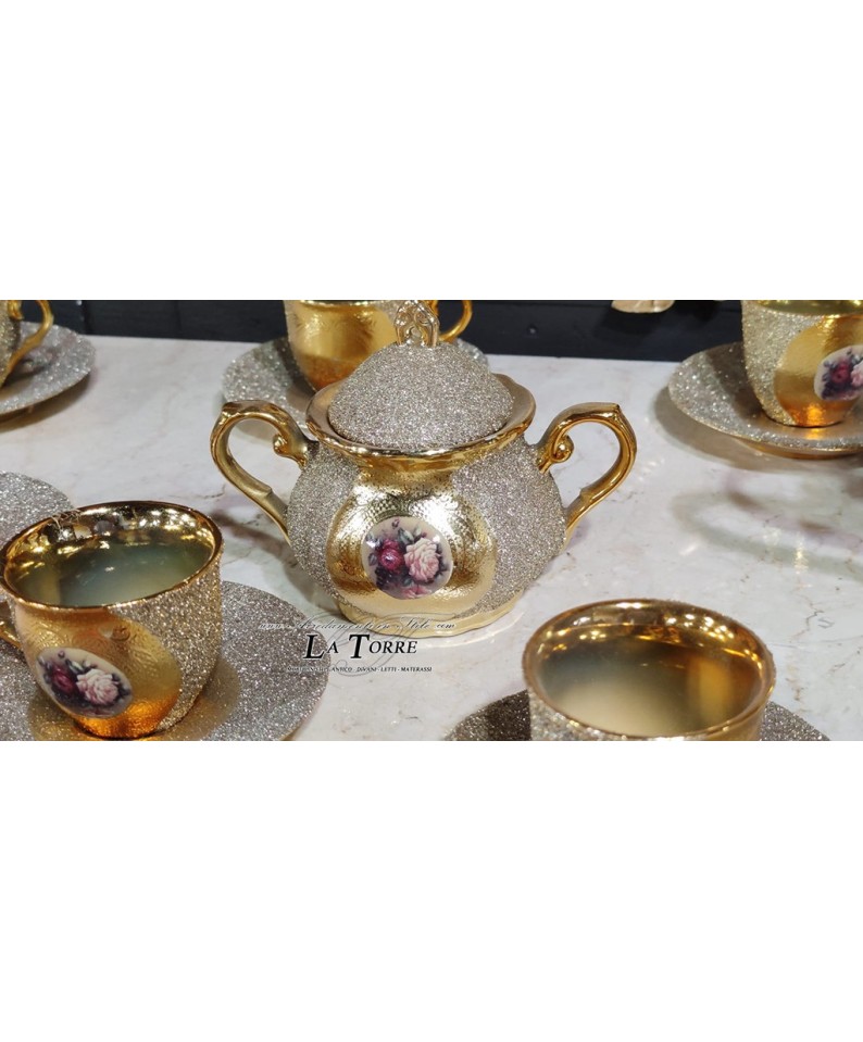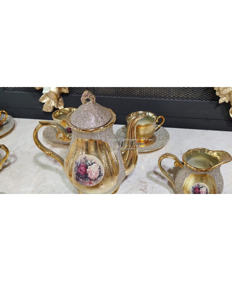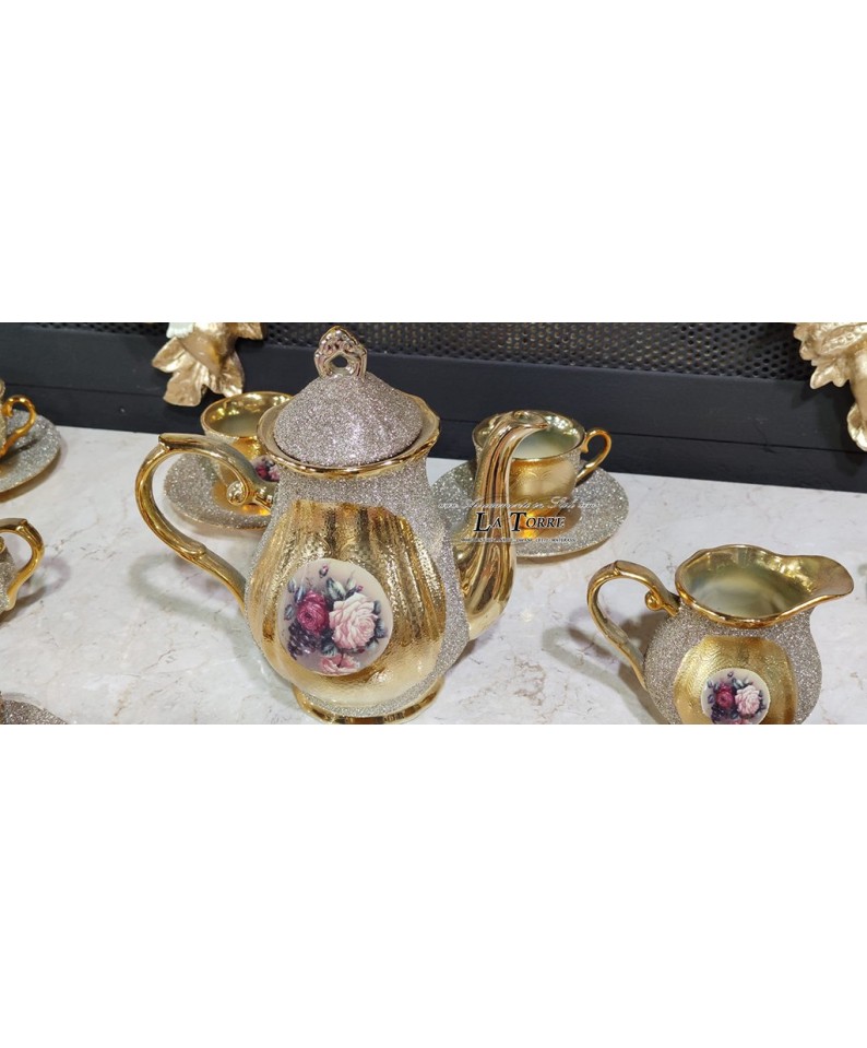 Coffee and tea set 27 pcs porcelain service ivory gold teapot cups saucers sugar holder
