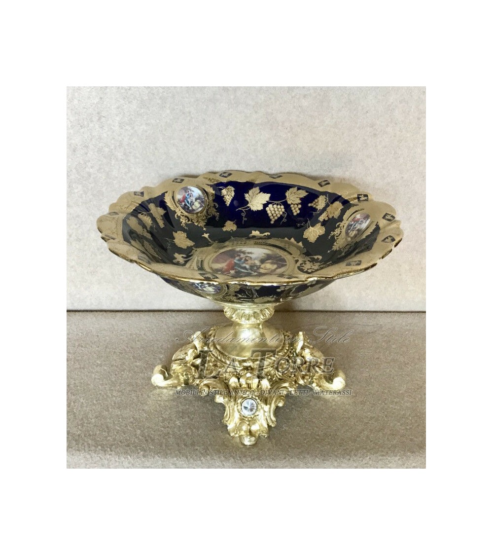 Centerpiece stand in blue and gold porcelain painted Liberty style P30