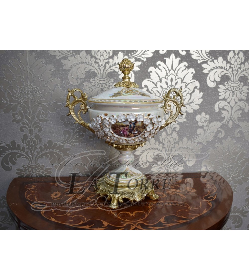 Chocolate holder stand in white porcelain painted Liberty style P19