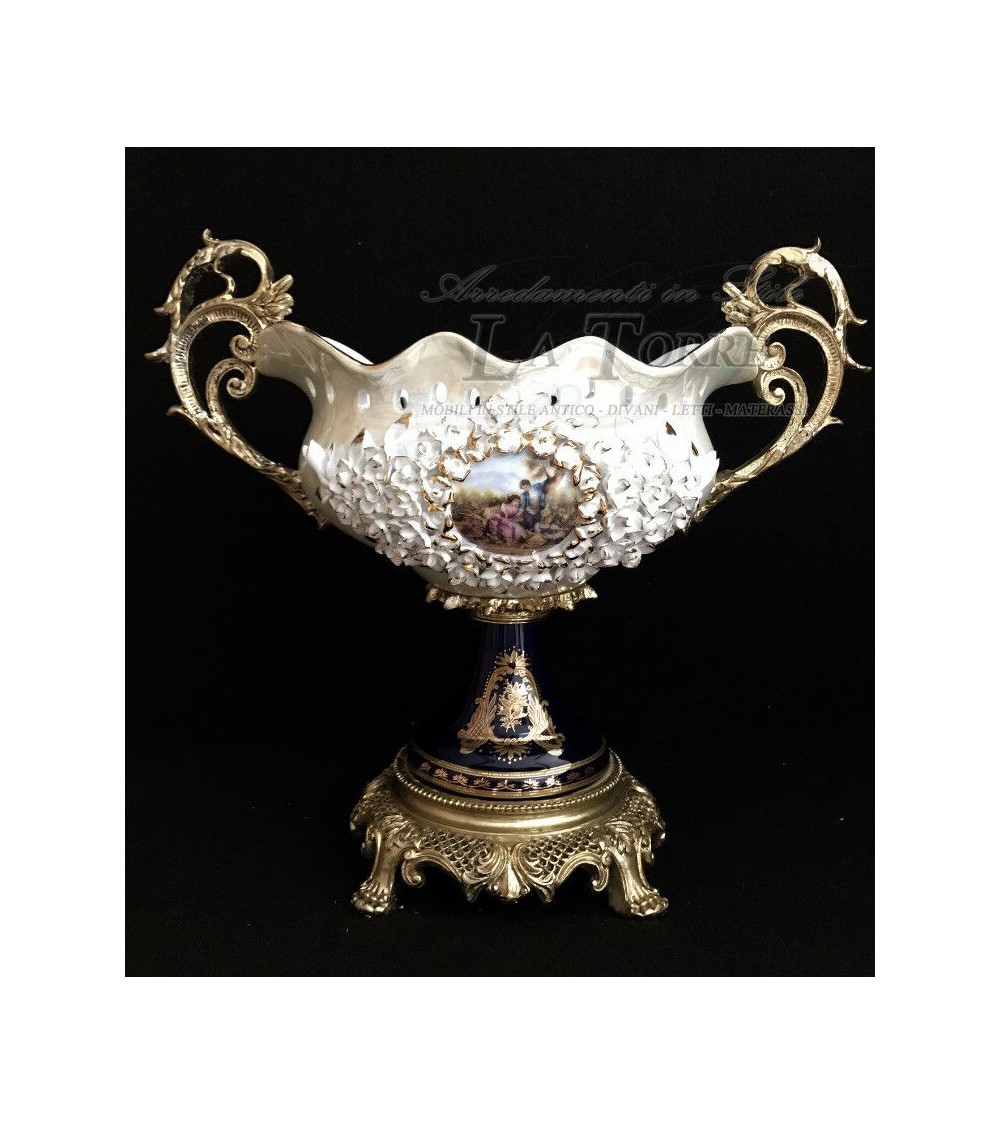 P20 painted white porcelain centerpiece bowl stand with handles