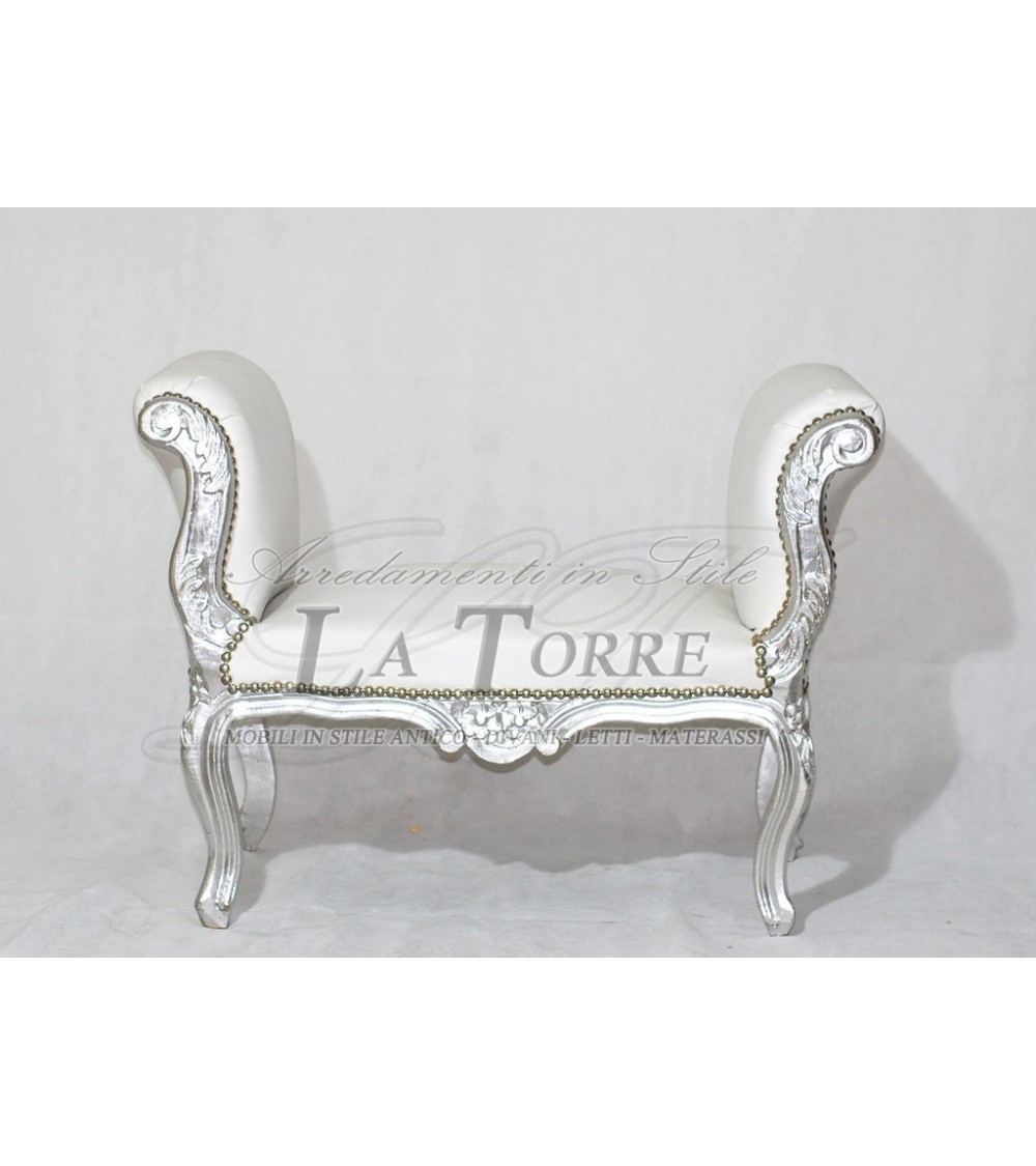 Dormeuse French bench sofa bench silver wood eco-leather white k86