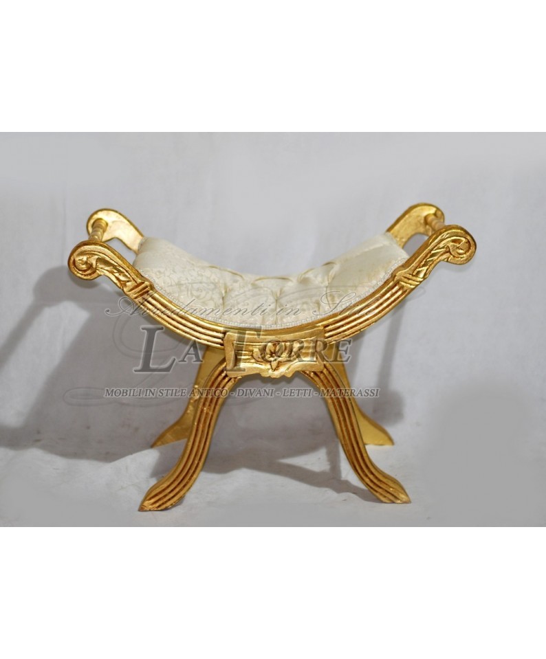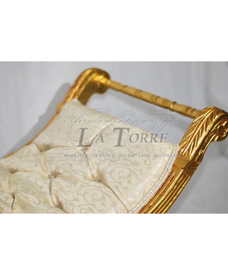 Savonarola Bench Louis XV bench gold stool champagne damask fabric Ar1562