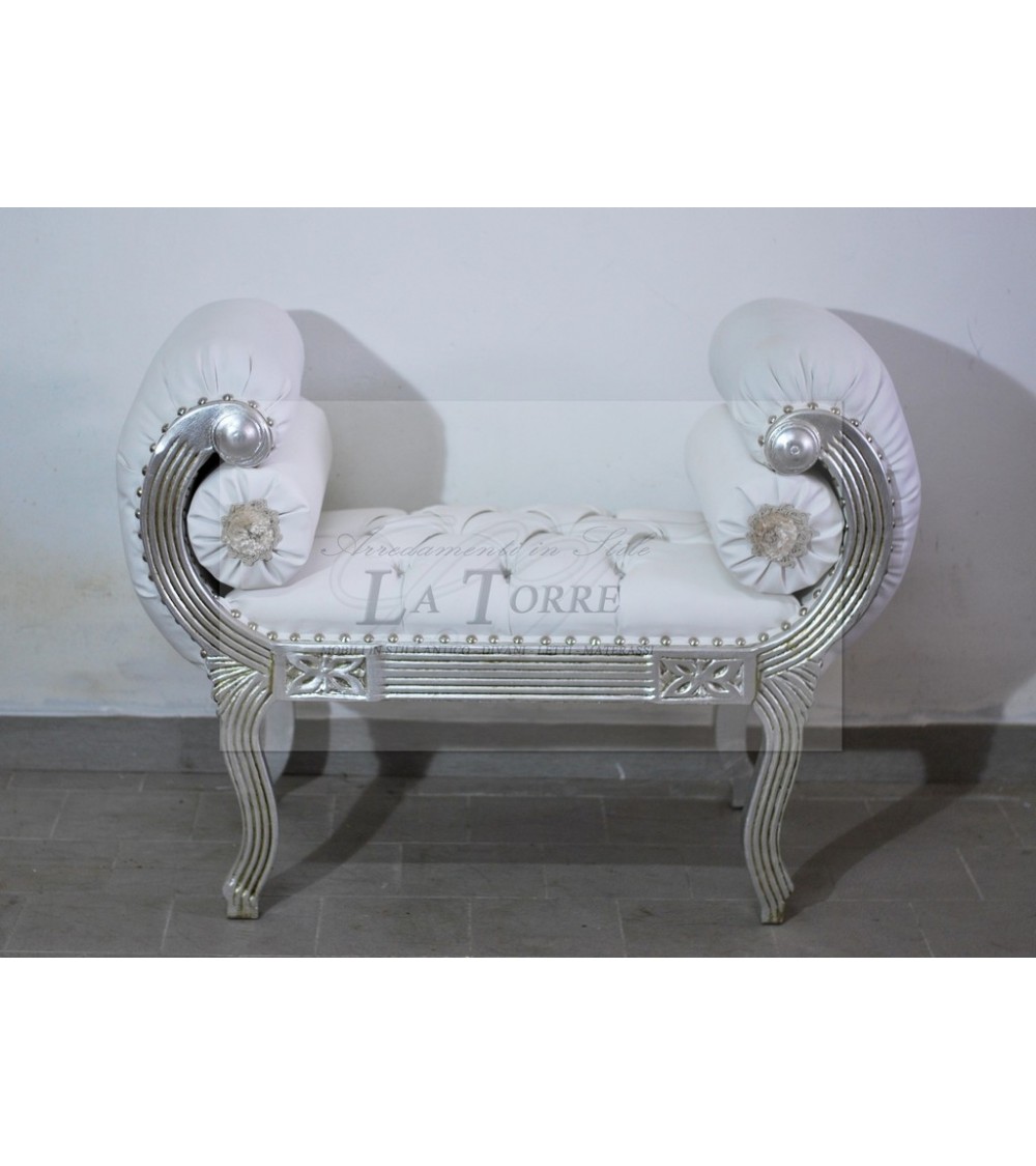Dormeuse sofa bench Chinese silver bench white swarovski eco-leather Ar079