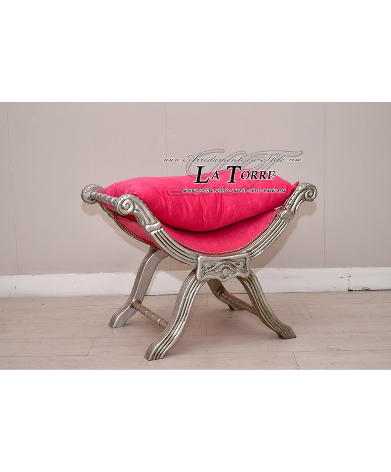Savonarola Bench Louis XV bench silver stool fuchsia velvet Ar1561