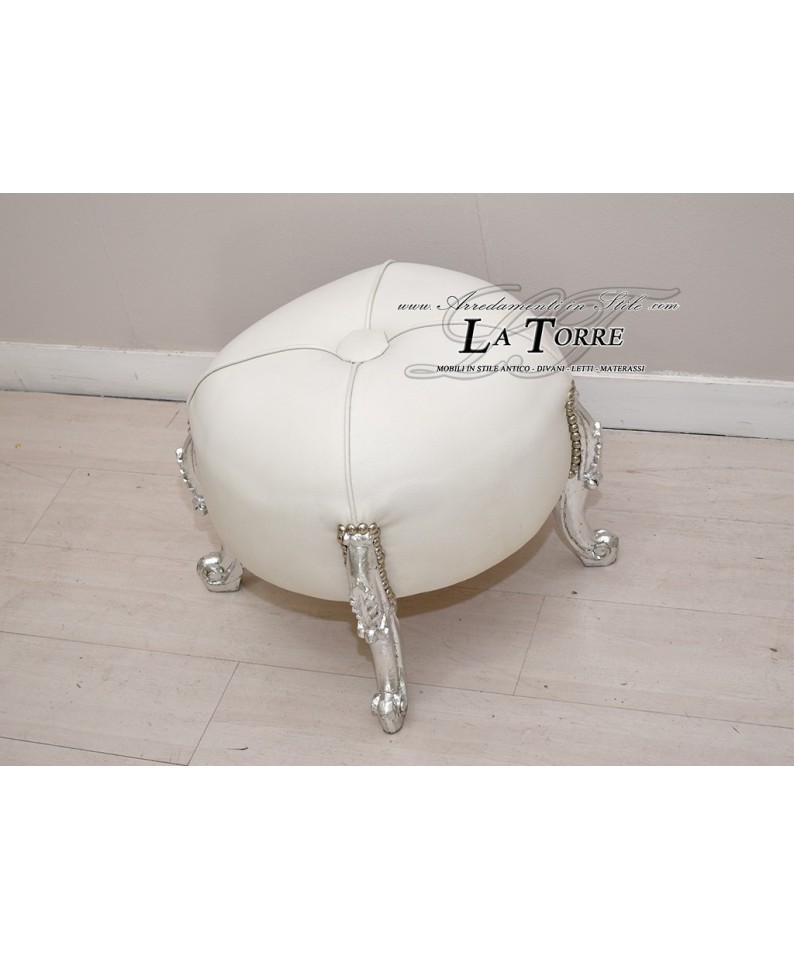 Pouf Eneas English Baroque style silver leaf eco-leather white AL6064