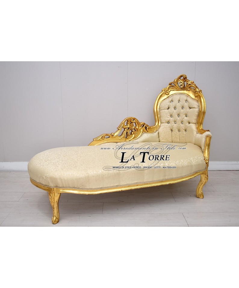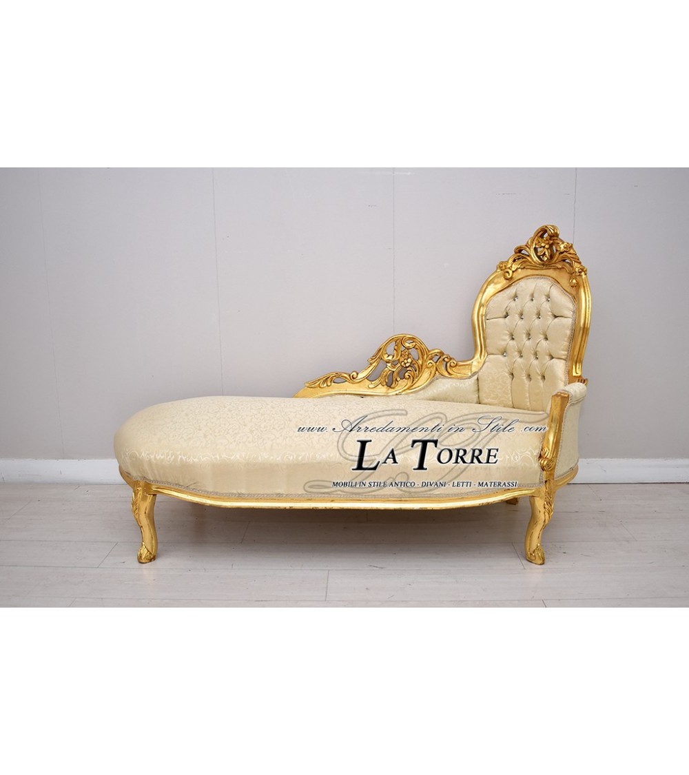 Dormeuse baroque sofa bench gold leaf ivory damask fabric 150 cm Ar9091