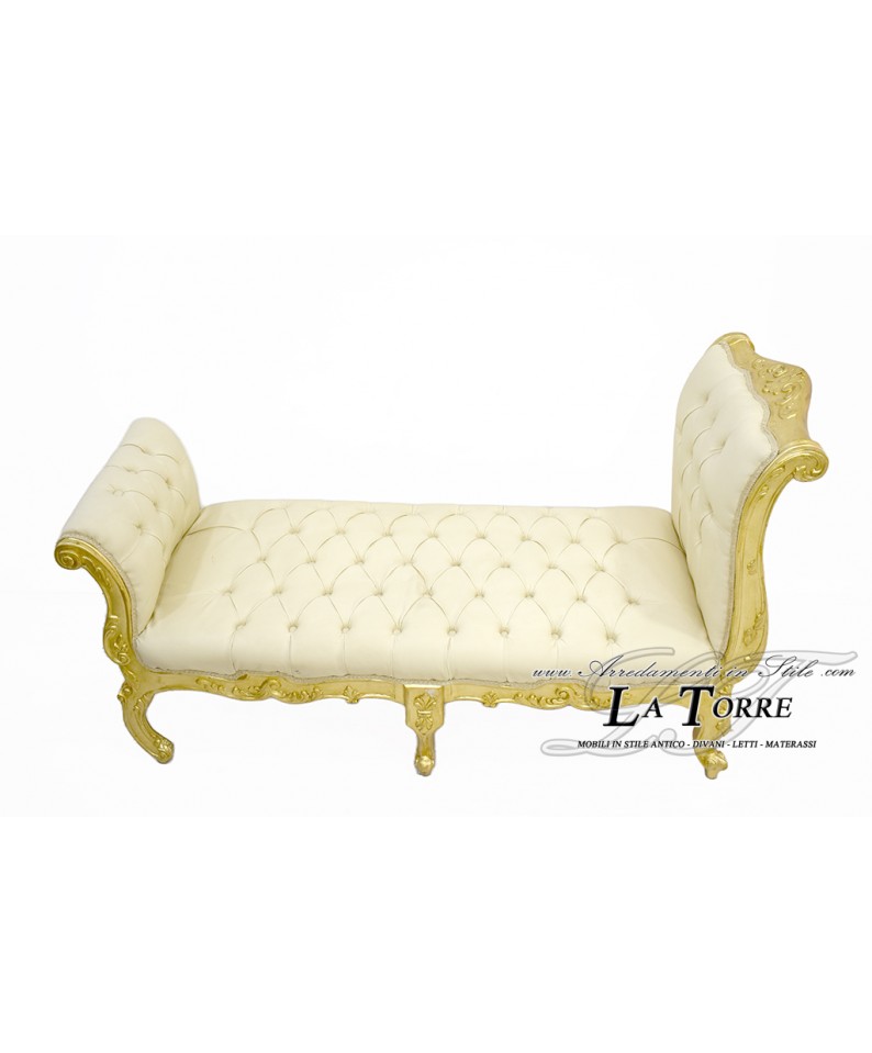 Dormeuse bench Cleopatra Louis XV Baroque style sofa bench gold leaf wood eco-leather ivory LT3014