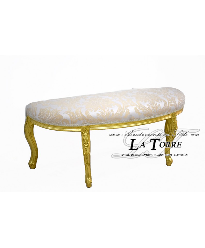 Louis XV baroque half-moon bench with Florentine lily and ivory gold fabric LT3030